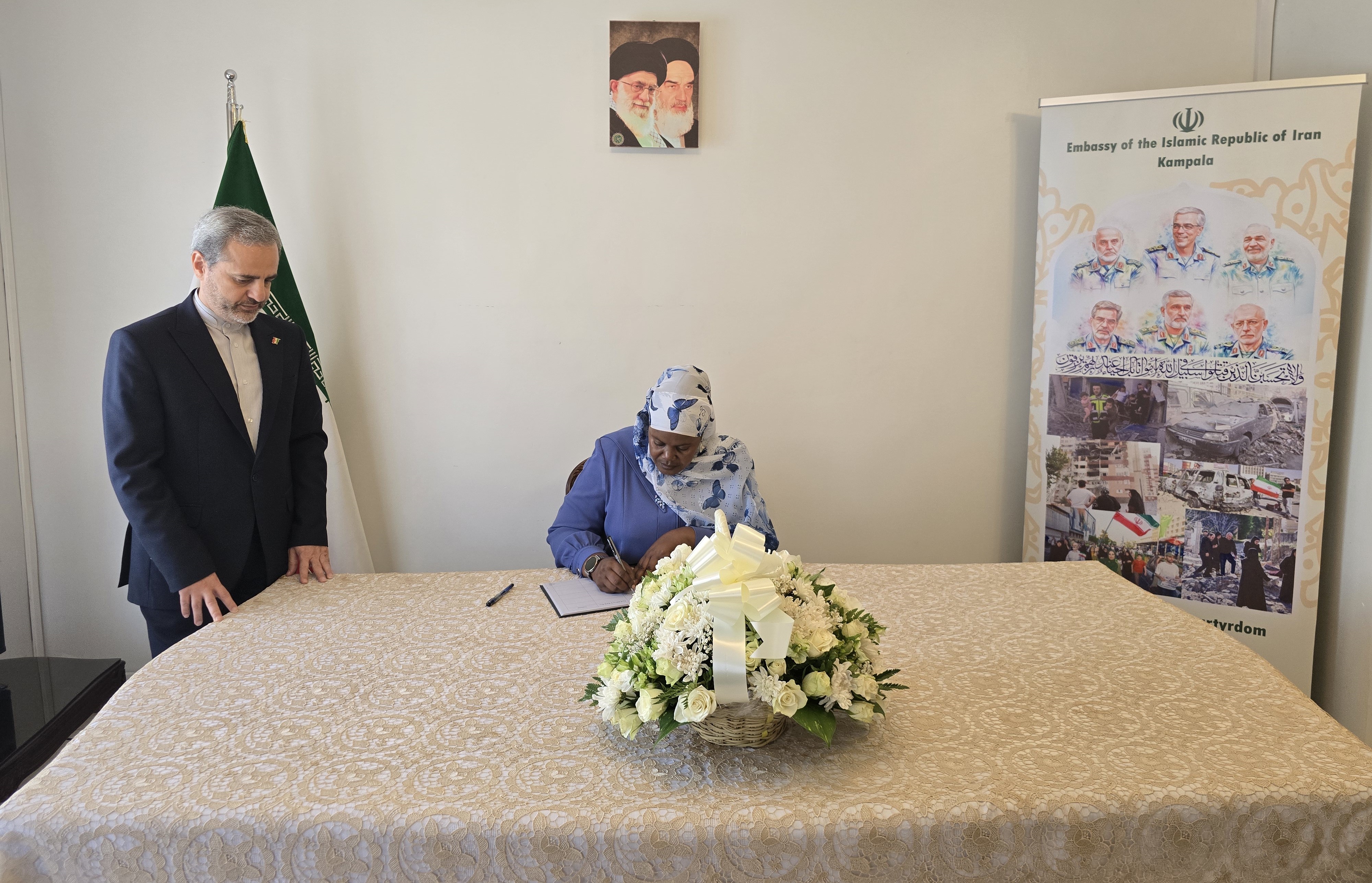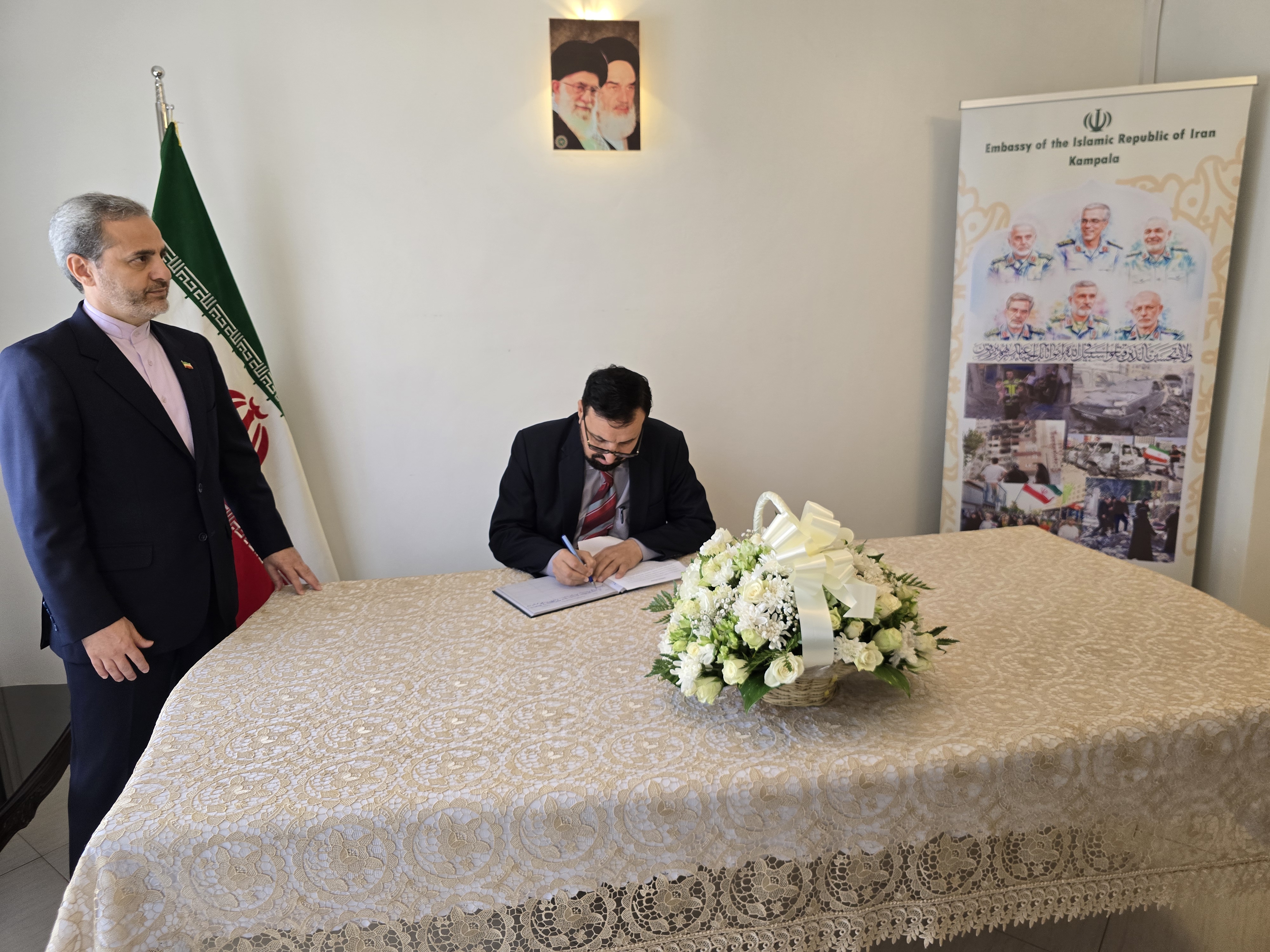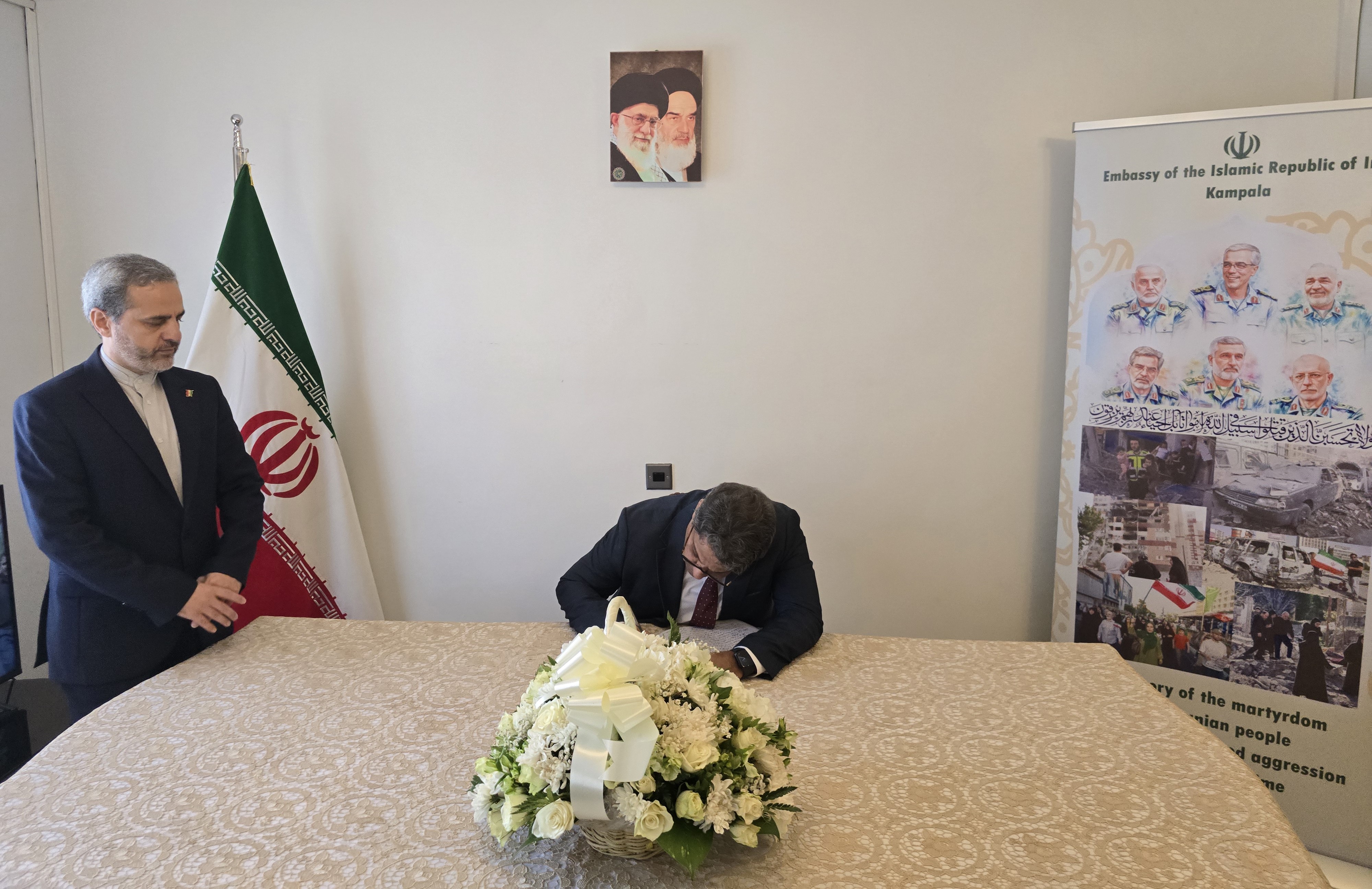 The ceremony, held on Tuesday and Wednesday this week, witnessed the presence of Ugandan government officials, ambassadors and diplomatic representatives based in Kampala, academic figures, and members of civil society organizations. They signed the book of solidarity and expressed their heartfelt sympathy and solidarity with the government and people of Iran.